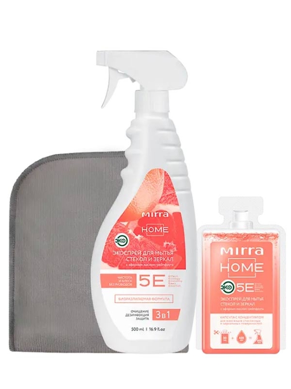 экологически безопасный ЭКОСПРЕЙ ДЛЯ МЫТЬЯ СТЕКОЛ (Флакон 500 мл с триггером-расплылителем + Капсула 50 мл)