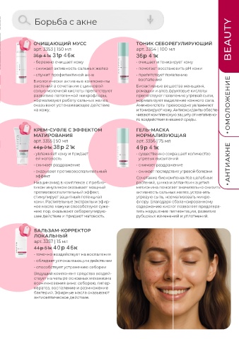 • устраняет проявления • средство быстрой коррекции возникновения акне: себорею, гипер-